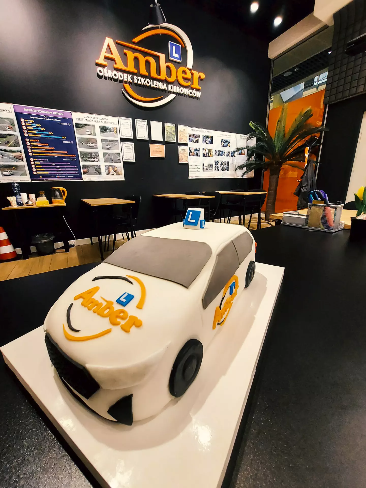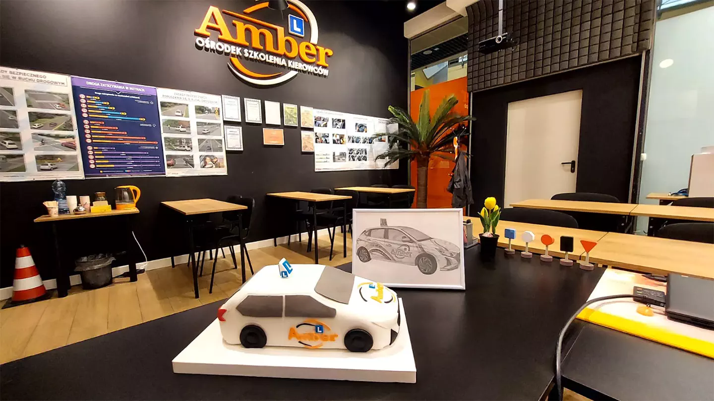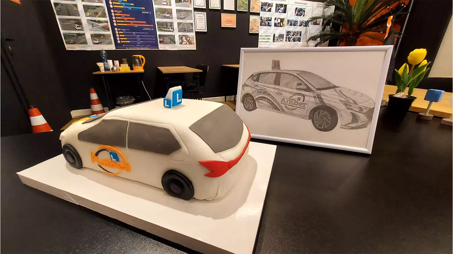 Paulina, nasz kursantka, po udanym szkoleniu i egzaminach zrobiła dla nas wspaniały i pyszny tort – OSK AMBER.