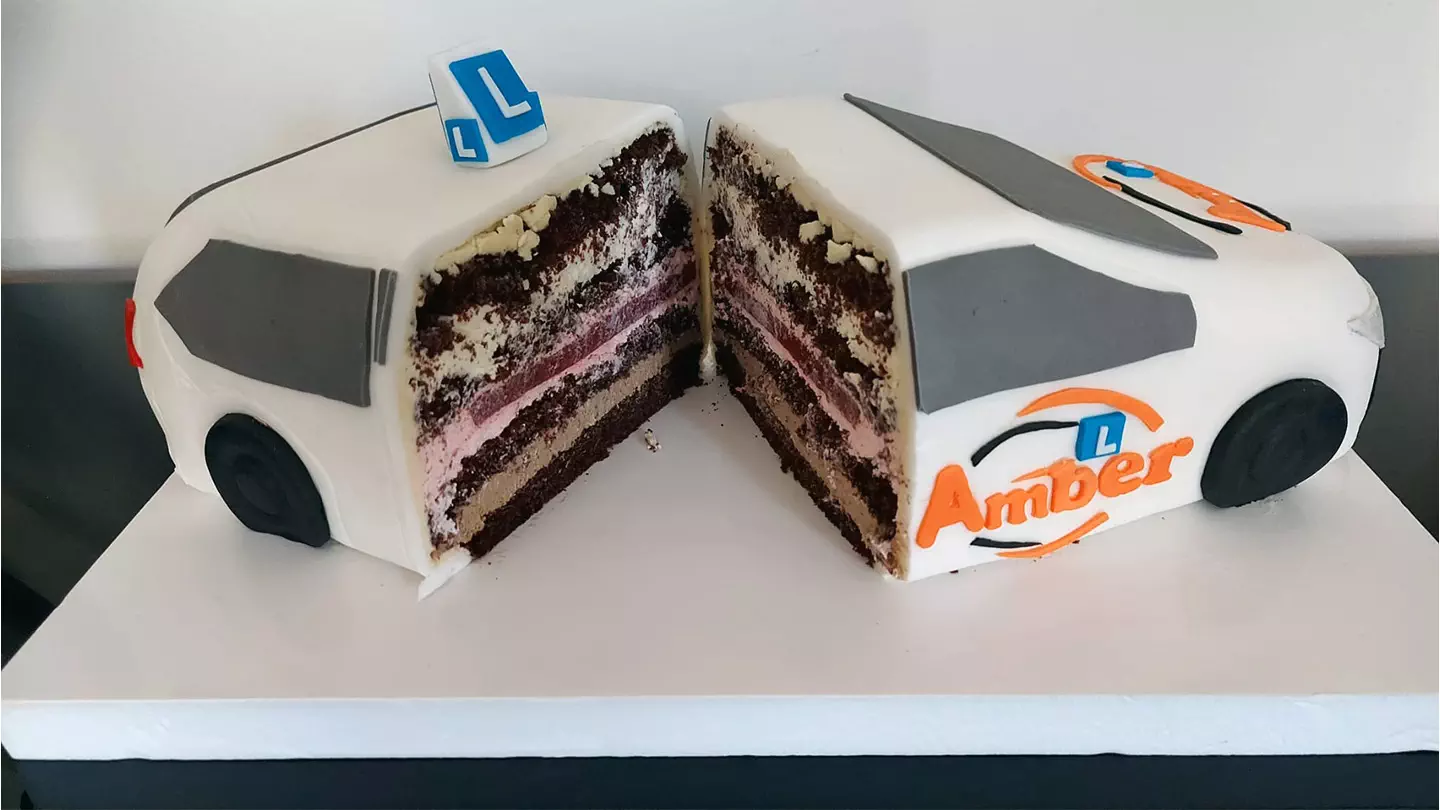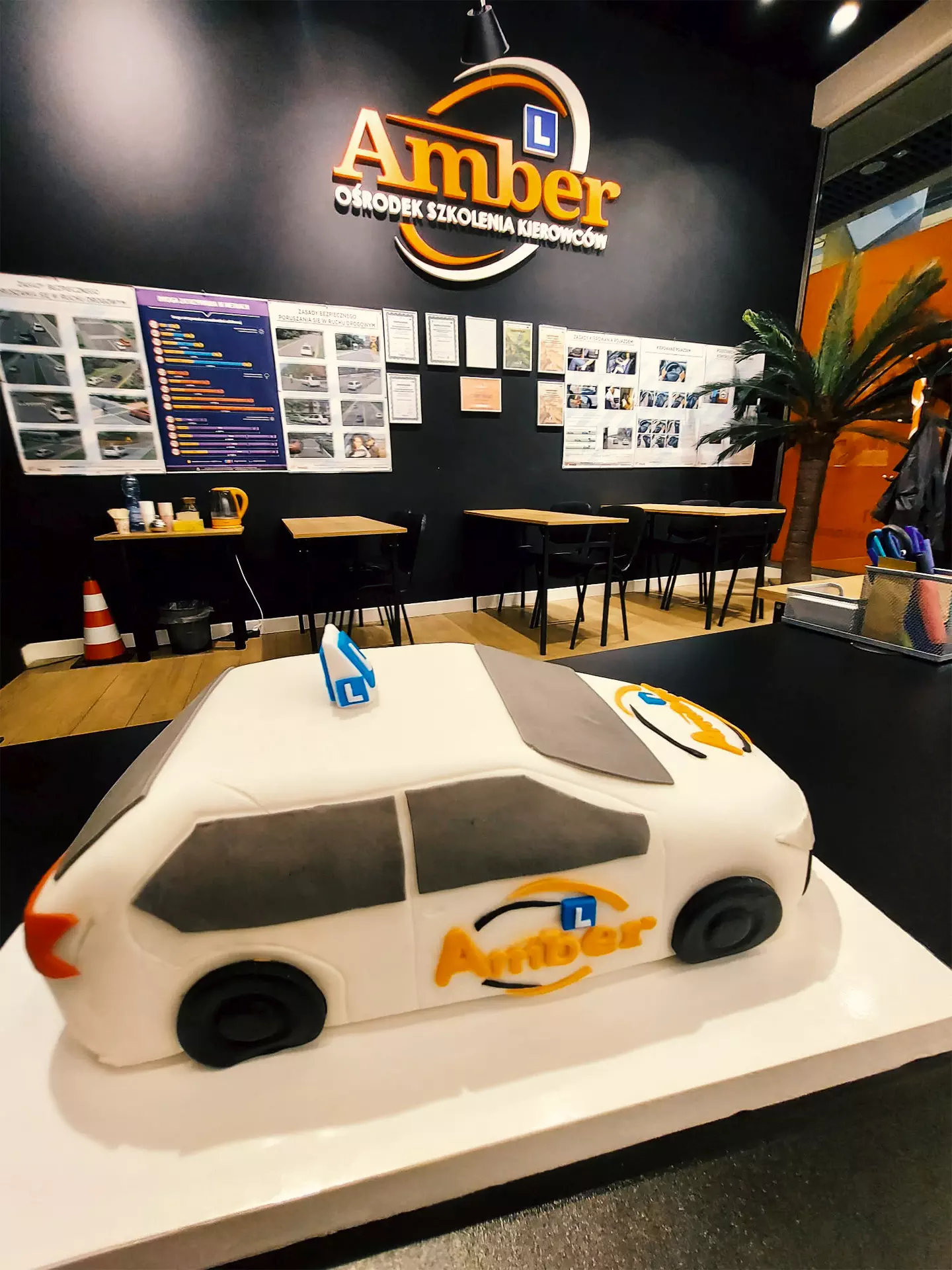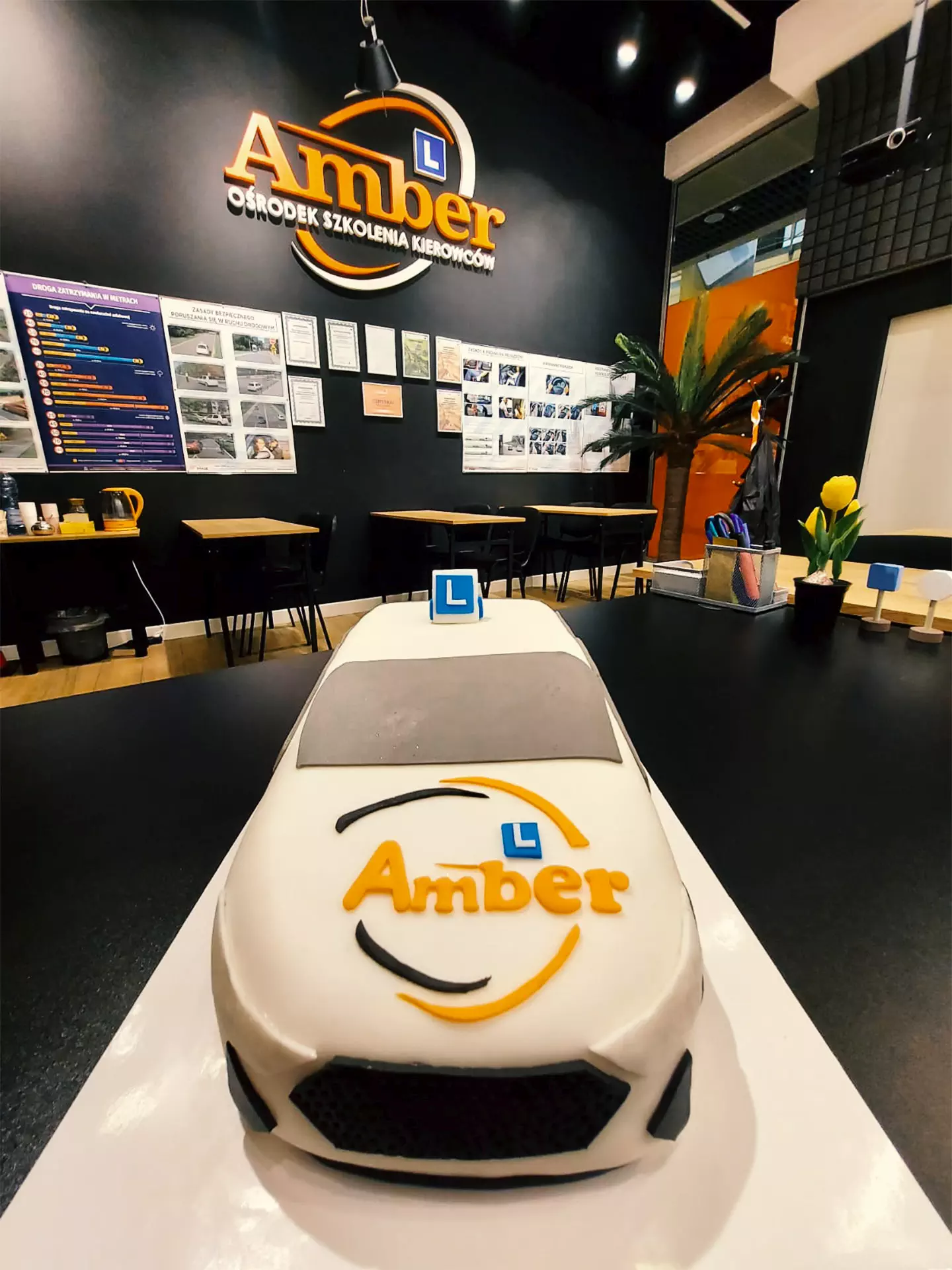 Paulina, nasz kursantka, po udanym szkoleniu i egzaminach zrobiła dla nas wspaniały i pyszny tort – OSK AMBER.